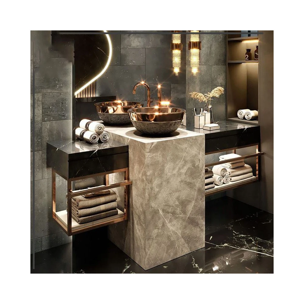 روشویی سرامیکی مشکی گلدن 90*48 جنس رویه سرامیک سوپر پولیش با نظافت آسان و مقاوم به جرمگیر ظاهری بسیار شیک و مدرن قابلیت اجرا با سرامیک مد نظر شما(ابعاد سرامیک 120*60) جنس کابینت PVC ست کامل شامل کابینت و رویه سرامیکی...
