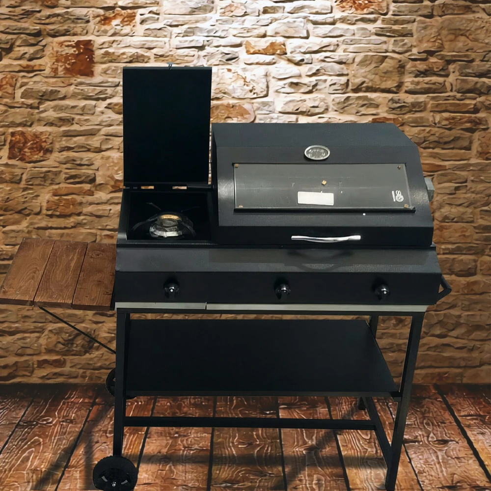 جنس بدنه: فلز  دارای 8 ردیف جای سیخ بصورت عمودی مجهز به سینی فلزی بدون دود و آلاینده امکان استفاده با گازهای شهری و کپسول