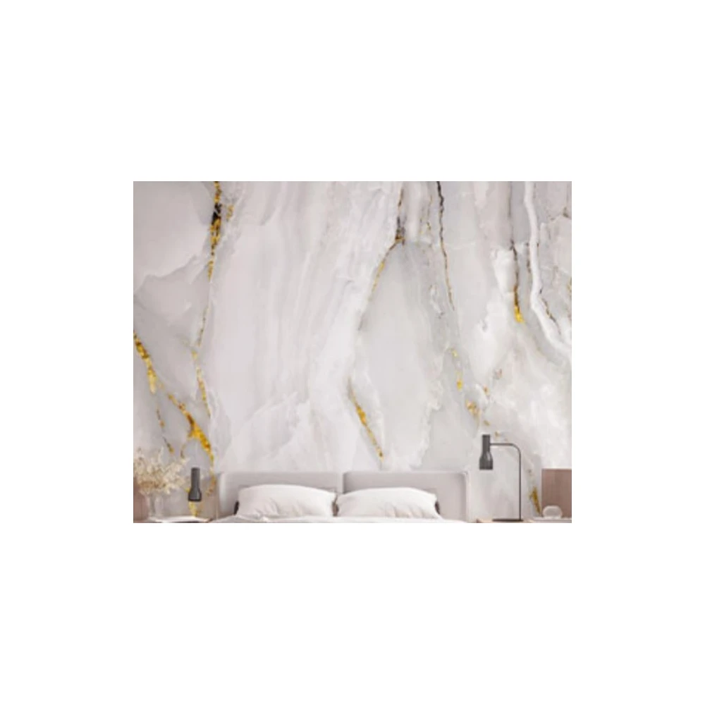 کاغذ دیواری سه بعدی طرح سنگ ماربل سفید طلایی BA-5306