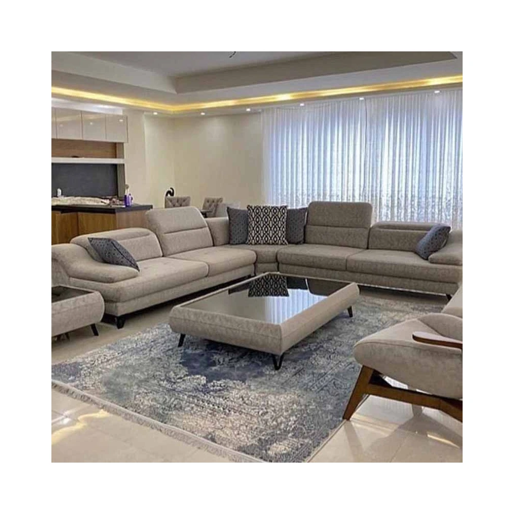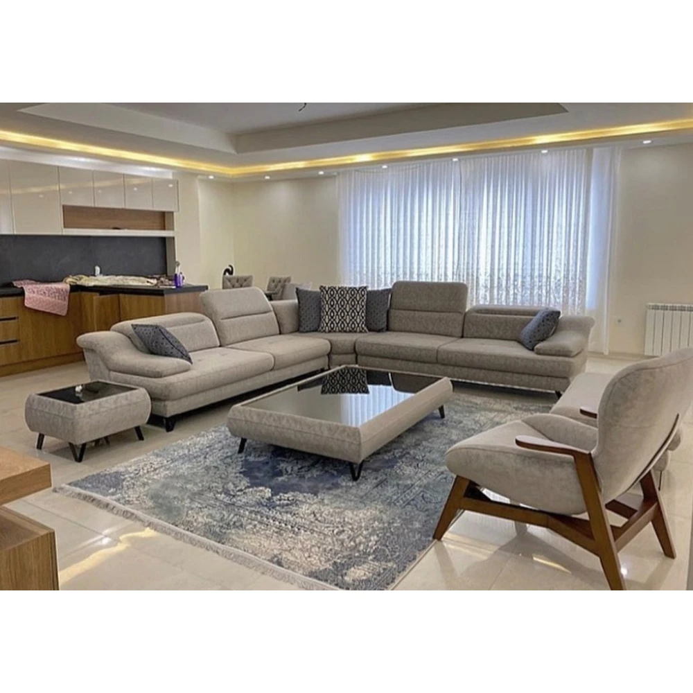ترکیب: کاناپه سه نفره+کنج وسط+ کاناپه سه نفره+ میز جلومبلی+ تک نفره