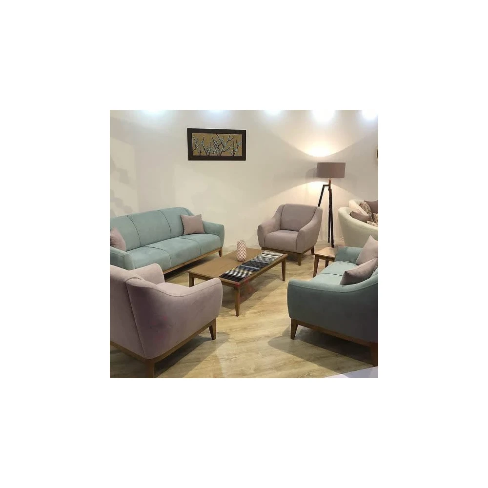 ست مبلمان: 3+2+1+1 امکان سفارش با تعداد نفرات متفاوت جنس پایه ها و بدنه: چوب راش  امگان تغییر رنگ پارچه و نوع چوب امکان افزودن میز و عسلی