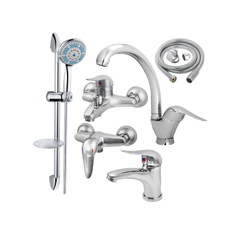 پک شیرآلات مدل راهو عصایی نیو کروم مجموعه 6عددی