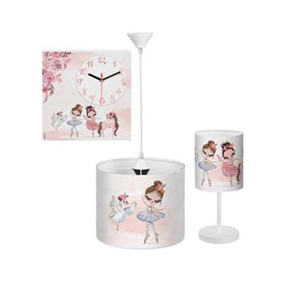 لوستر کودک به همراه آباژور و ساعت دیواری Mommy طرح قو و بالرین کد GR-P-2160
