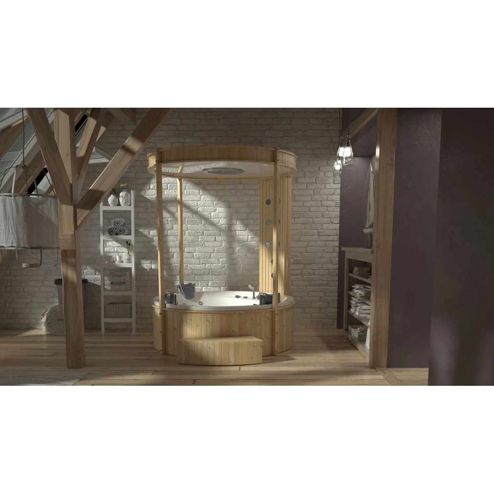 - در صورت سفارش این جکوزی به صورت روکار و مسقف، چوب ترموود به دور جکوزی افزوده می شود.