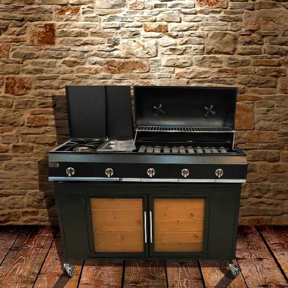 باربیکیو گازی همراه پلوپز و سرخ کن پایه کابینت دار مدل G120+SK