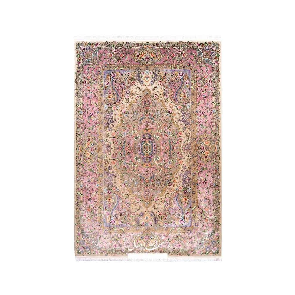 فرش ماشینی کلاسیک کرم حاشیه صورتی کد 109