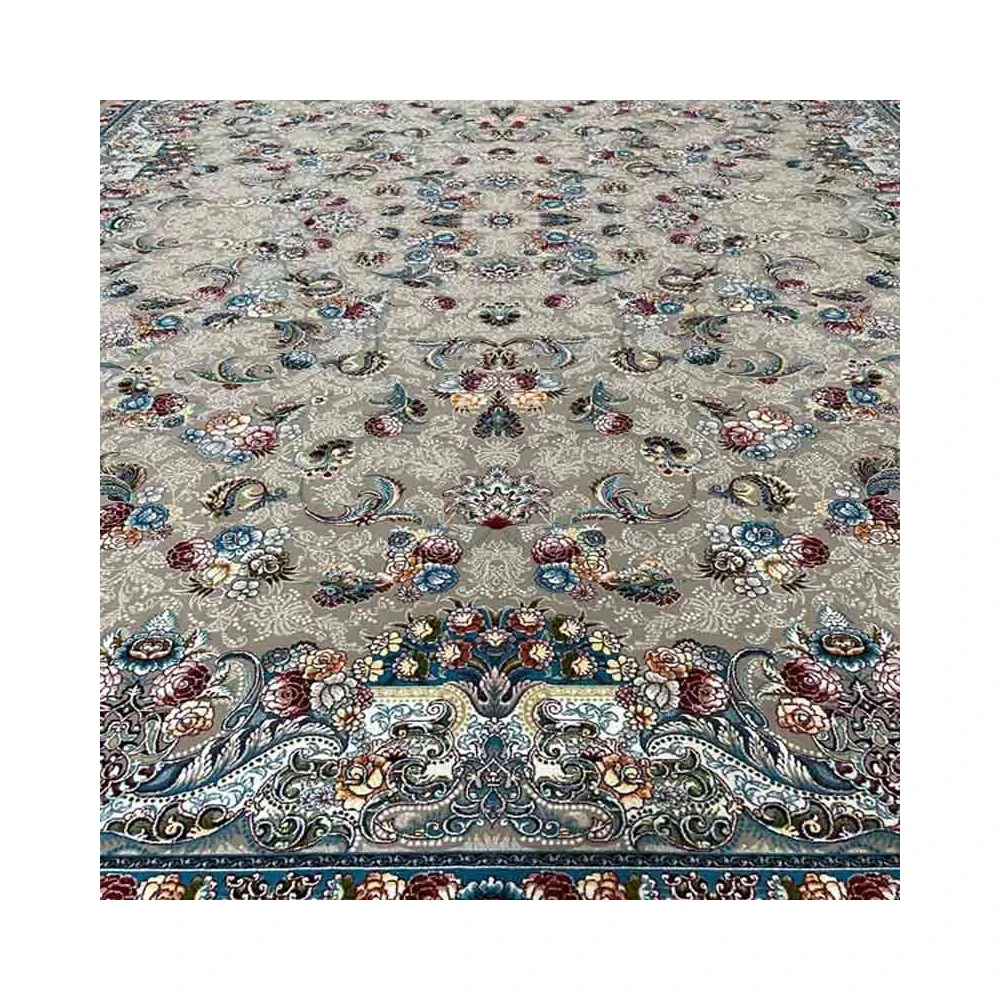 فرش ماشینی کاشان 12 متری 700 شانه نقشه الماس زمینه نقره ای