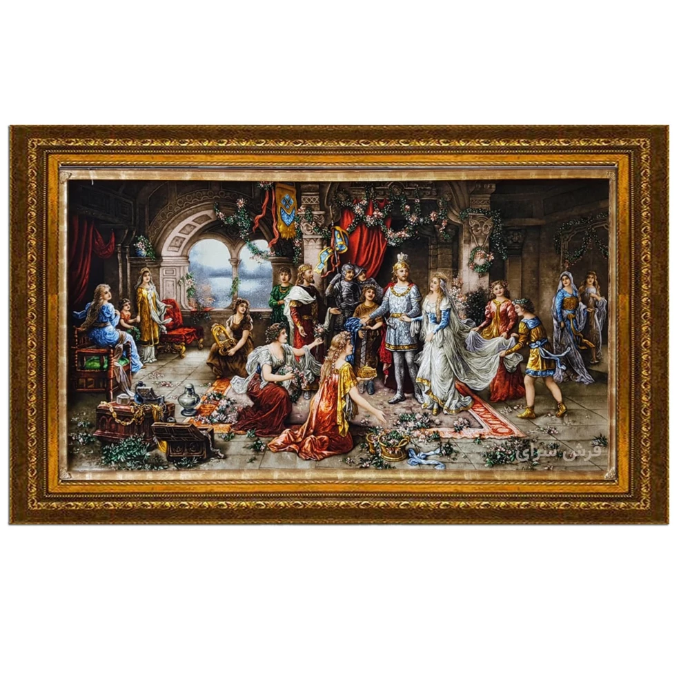 تابلو فرش ابریشم دستباف تبریز مدل تاجگذاری حضرت سلیمان به ابعاد 110*220 سانتی متر