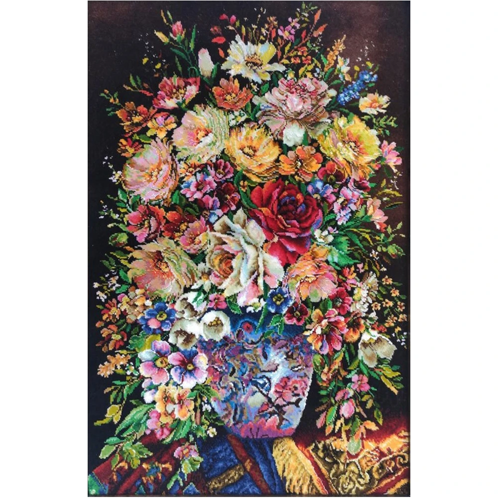 تابلو فرش ابریشم دستباف تبریز مدل گل و گلدان ترمه دار به ابعاد 50*70 سانتی متر