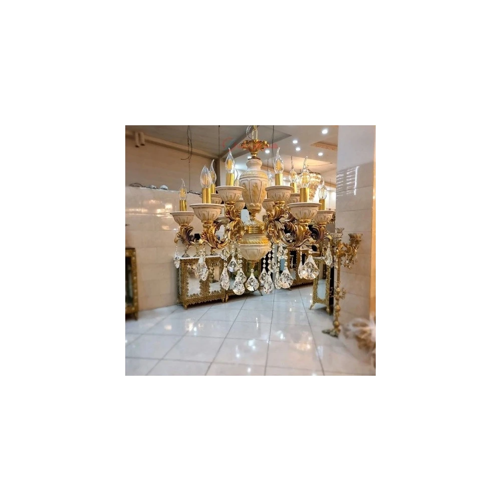 لوستر 6 شاخه برنزی مجلسی ، ترکیب با سرامیک