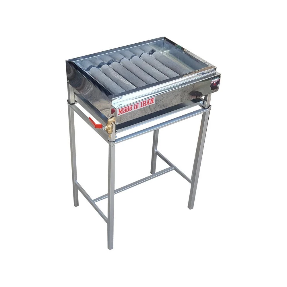 جنس بدنه: فلز  دارای 8 ردیف جای سیخ بصورت عمودی مجهز به سینی فلزی بدون دود و آلاینده امکان استفاده با گازهای شهری و کپسول
