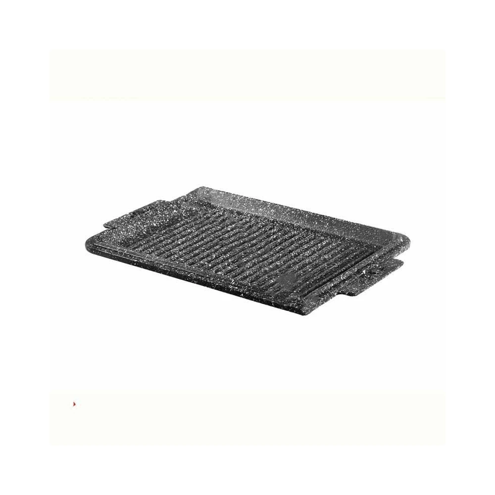 صفحه گریل با جنس چدنی که برای پخت و پز و گریل کردن مرغ، گوشت،برگر،ماهی و انواع مواد غذایی حتی سبزیجات بسیار مناسب بوده و لذت بخت غذایی لذیذ و سلامت را برای شما به همراه دارد. این صفحه قابلیت قرار گیری بر روی انواع شعله های گاز خانگی،کباب پز و آتش مستقیم مانند آتش زغال را داراست و همچنین به سبب داشتن روکش لعاب شده همانند تفلون مانع از چسپیدن مواد غذایی بر روی صفحه میشود.