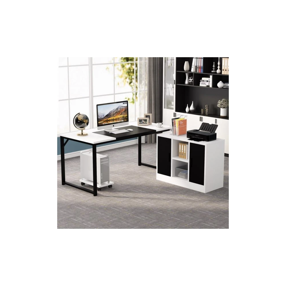 سطح کار بزرگ: این میز L شکل با دسکتاپ بسیار بزرگ عرضه می شود که فضای ذخیره سازی کافی را برای چندین مانیتور، صفحه کلید، اسناد و لوازم جانبی میز فراهم می کند. علاوه بر این، ارتفاع باعث می شود پای شما به راحتی حرکت کند