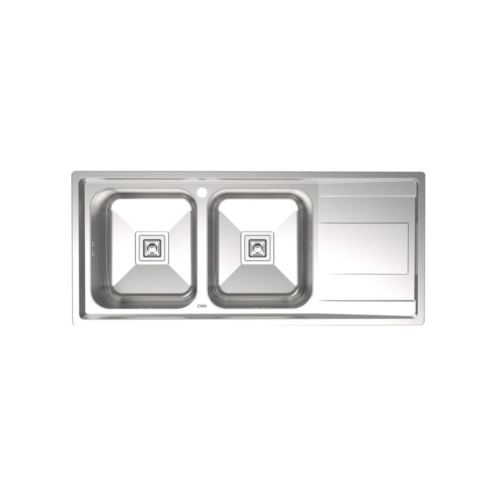 برند سینک:کن نوع سینک:توکار, هم سطح (Flush Mount) ابعاد سینک (cm):50*120 عمق سینک:23 سانتی متر نمای ظاهری سینک:استیل جنس سینک:استنلس استیل با ضخامت 1 میلی متر تعداد لگن سینک:2 وضعیت لگن سینک:لگن چپ, لگن راست