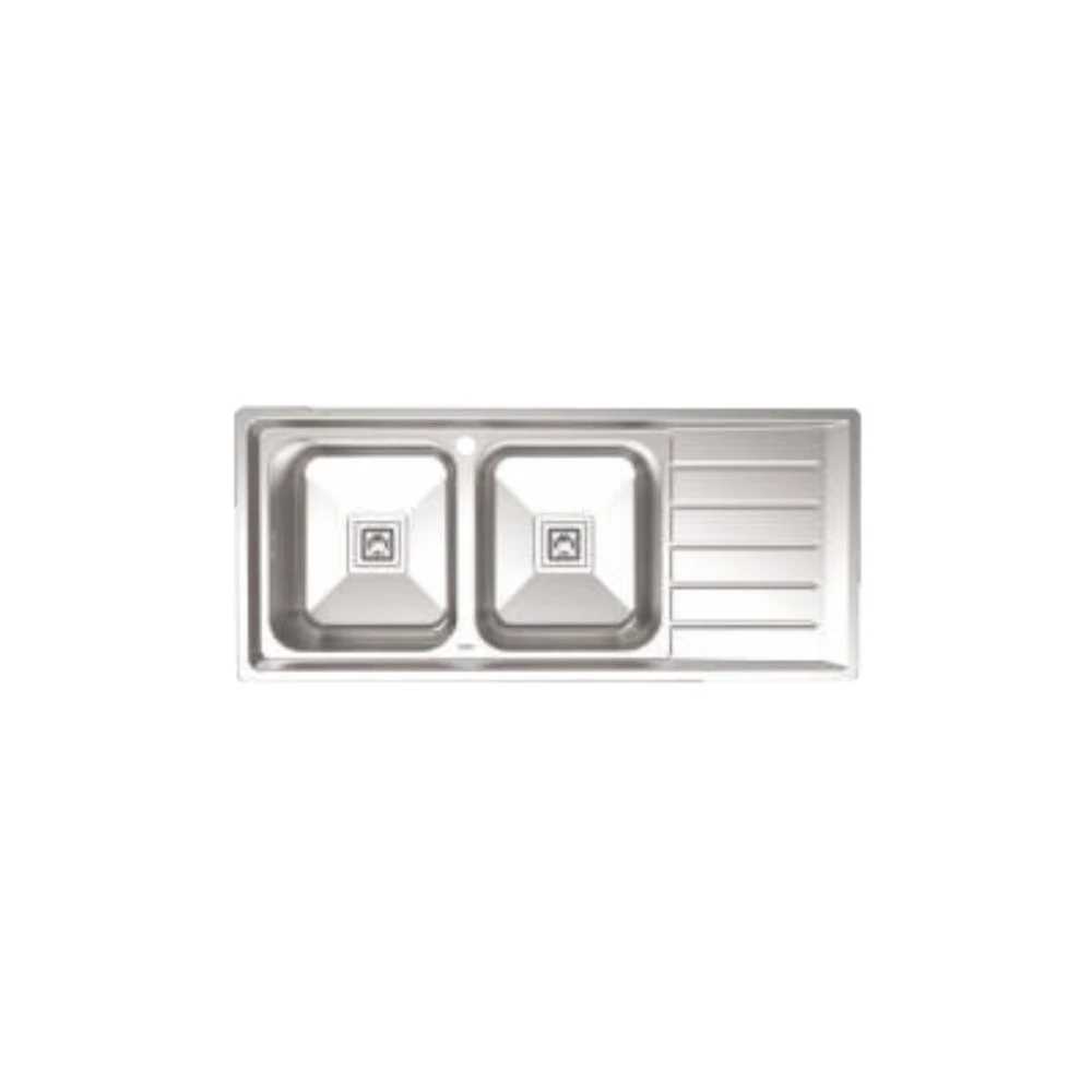 برند سینک:کن نوع سینک:توکار, هم سطح (Flush Mount) ابعاد سینک (cm):50*120 عمق سینک:23 سانتی متر نمای ظاهری سینک:استیل جنس سینک:استنلس استیل با ضخامت 1 میلی متر تعداد لگن سینک:2 وضعیت لگن سینک:لگن چپ, لگن راست