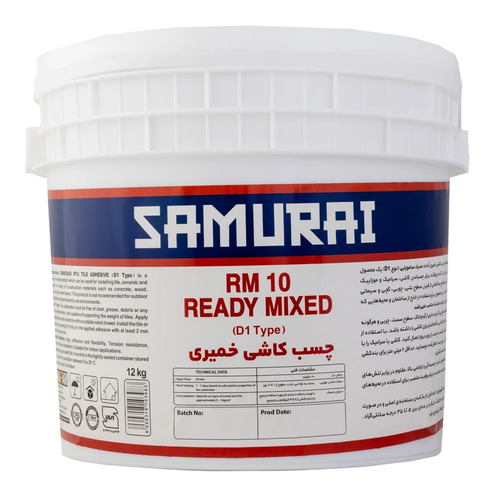 چسب کاشی خمیری آماده مصرف سامورایی (نوع D1) یک محصول پایه پلیمری است که میتواند برای چسباندن کاشی، سرامیک و موزاییک برروی انواع مصالح ساختمانی از قبیل سطوح بتنی، چوبی، گچی و سیمانی استفاده شود. این محصول برای استفاده در خارج از ساختمان و محیطهایی که دائما در معرض رطوبت هستند مناسب نمیباشد.