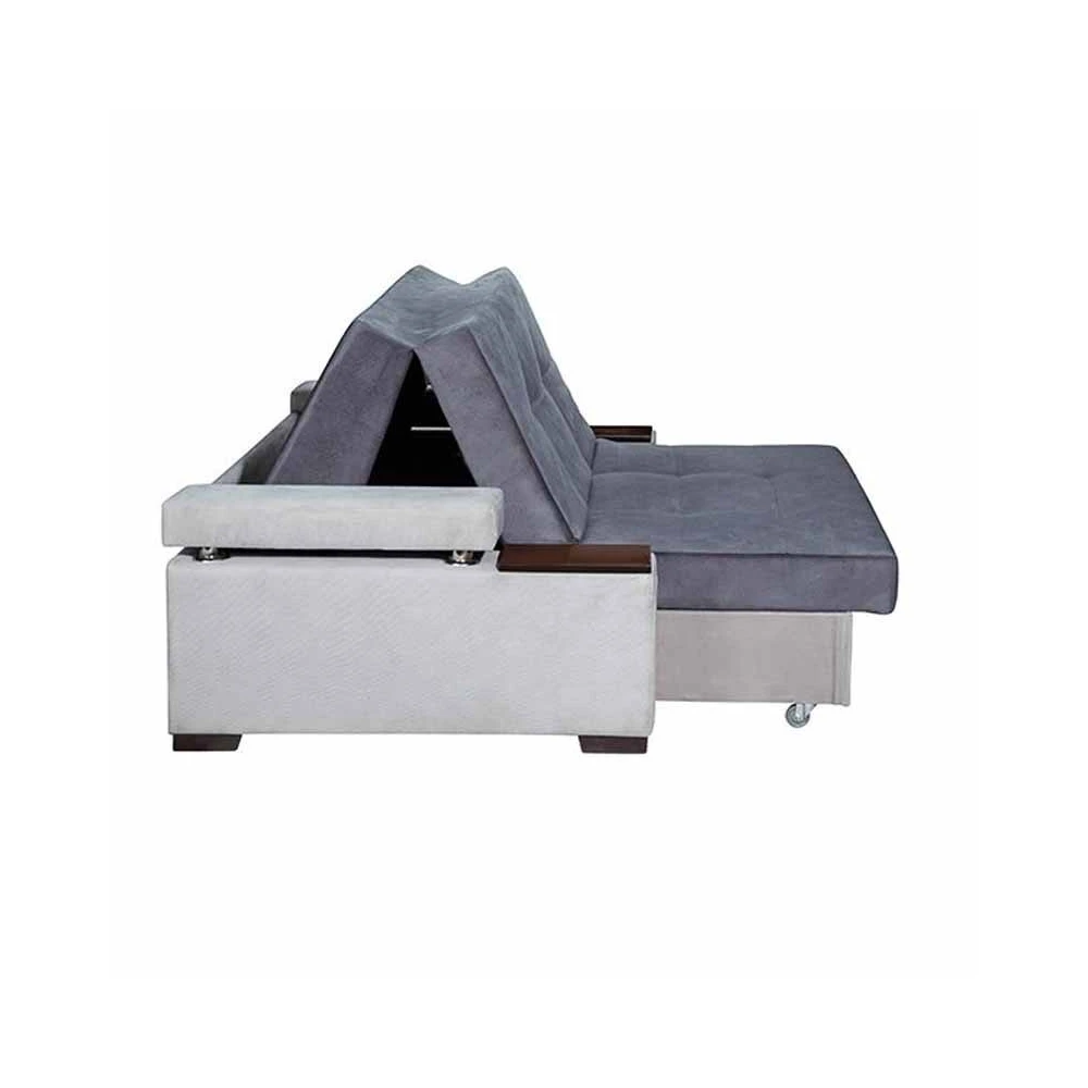 ترکیب نشیمن: کاناپه سه نفره دسته دار+کاناپه دو نفره بدون دسته+کنج وسط+درازکش دارای مکانیزم تختخواب شو رنگ و جنس پارچه: بر اساس سفارش مشتری