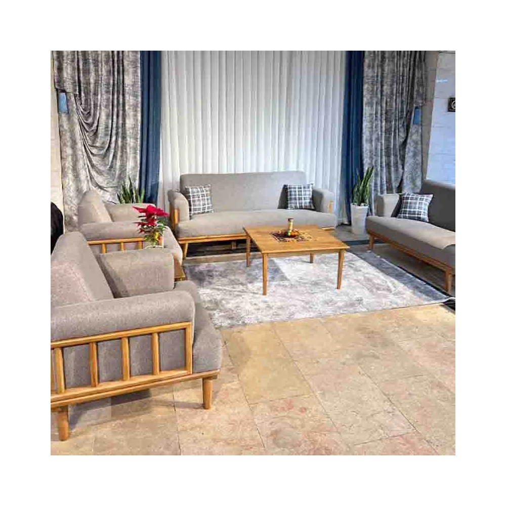 ست مبلمان: 3+2+1+1 امکان سفارش با تعداد نفرات متفاوت جنس پایه ها و بدنه: چوب راش  امگان تغییر رنگ پارچه و نوع چوب امکان افزودن میز و عسلی
