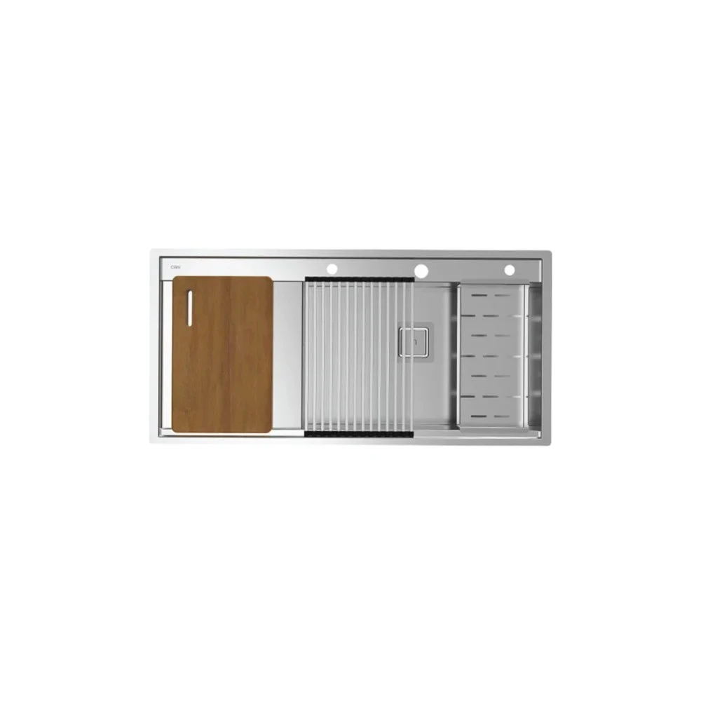 گارانتی:60 ماه مدل:9102 نوع نصب:روکار ضخامت ورق:1mm جنس سینک:استنلس استیل طرح سینک:فانتزی تعداد لگن:2 عمق لگن:21cm وضعیت لگن سینک:سمت راست/چپ وضعیت سینی:دارد رنگ:استیل طول:120cm عرض:60cm