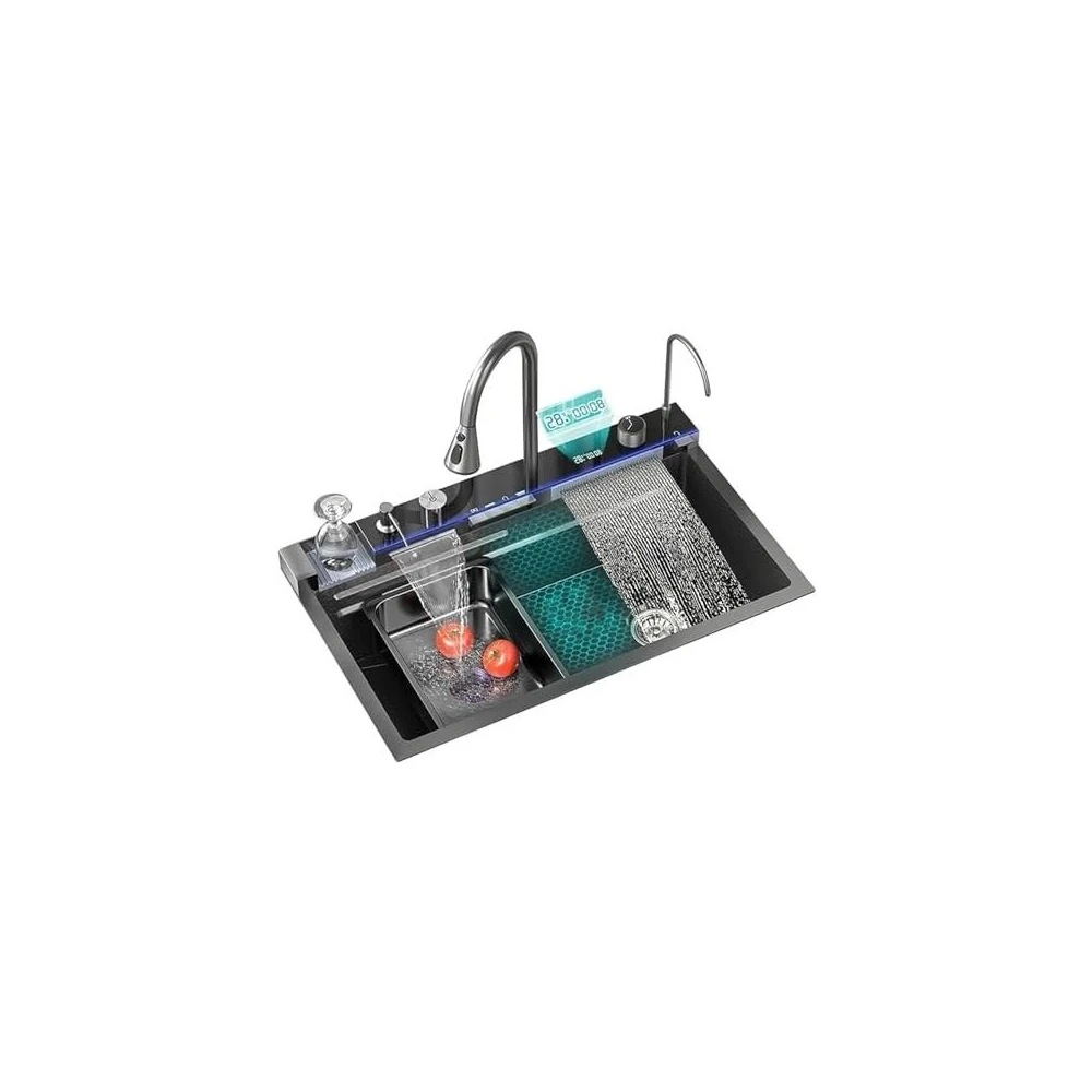 اندازه:45*75 جنس ورق: استیل 304 تجهیزات: شیرظرفشویی شلنگدار،شیر تصفیه،شیر آبشاری،لیوان شور،جامایعی،سیفون اتومات،سبد استیل،تخته سبزیجات،چراغ ال ای دی بدون نیاز به باطری،صفحه نمایشگر دمای آب بدون نیاز به برق و باطری...