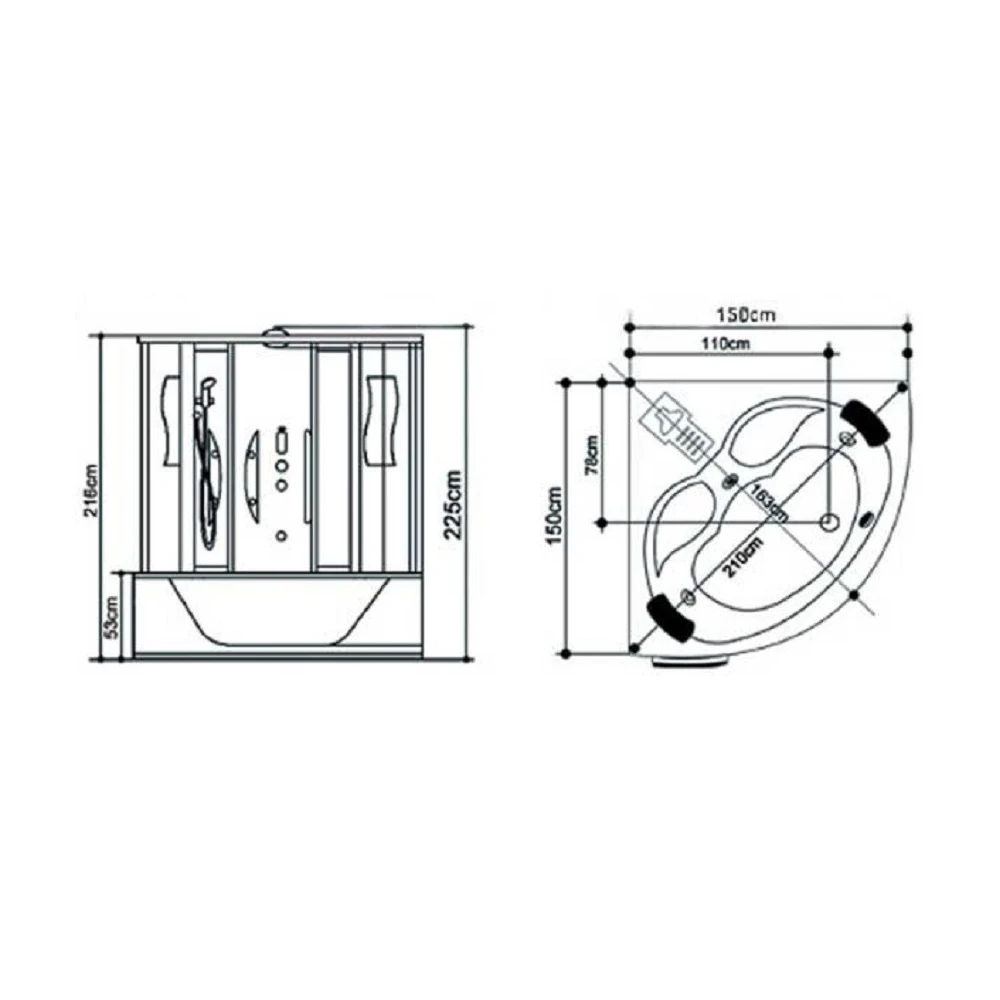 ابعاد سونا بخار(طول*عرض):150*150 cm قابل ارائه در 3 تیپ طبق جدول دارای شیرآلات و دوش ثابت و متحرک امکانات ماساژور، سیستم صوتی و روشنایی و... دارای طراحی شیک و زیبا