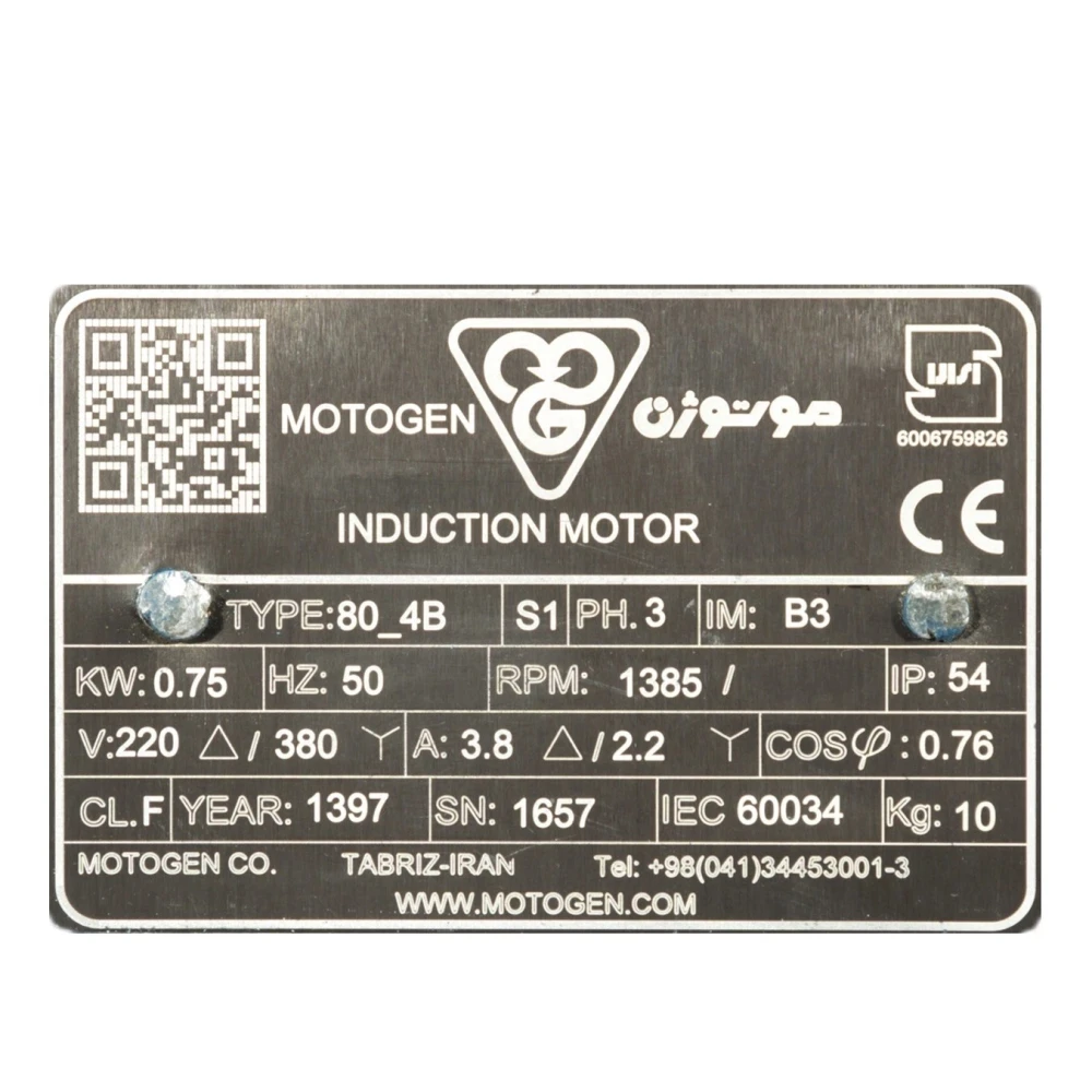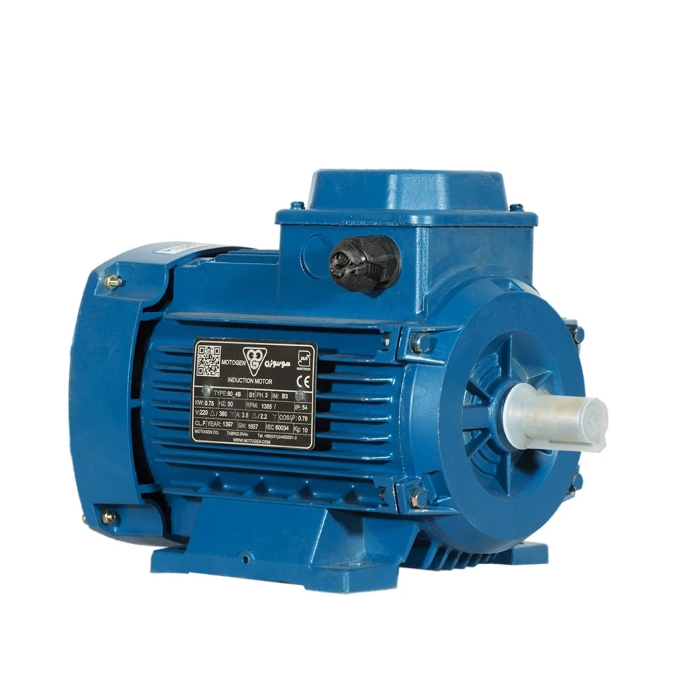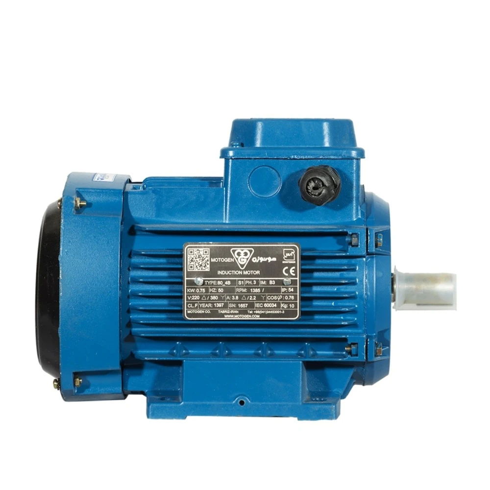 الکتروموتور موتوژن تبریز 1 اسب 0.75 کیلووات سه فاز پوسته آلومینیوم