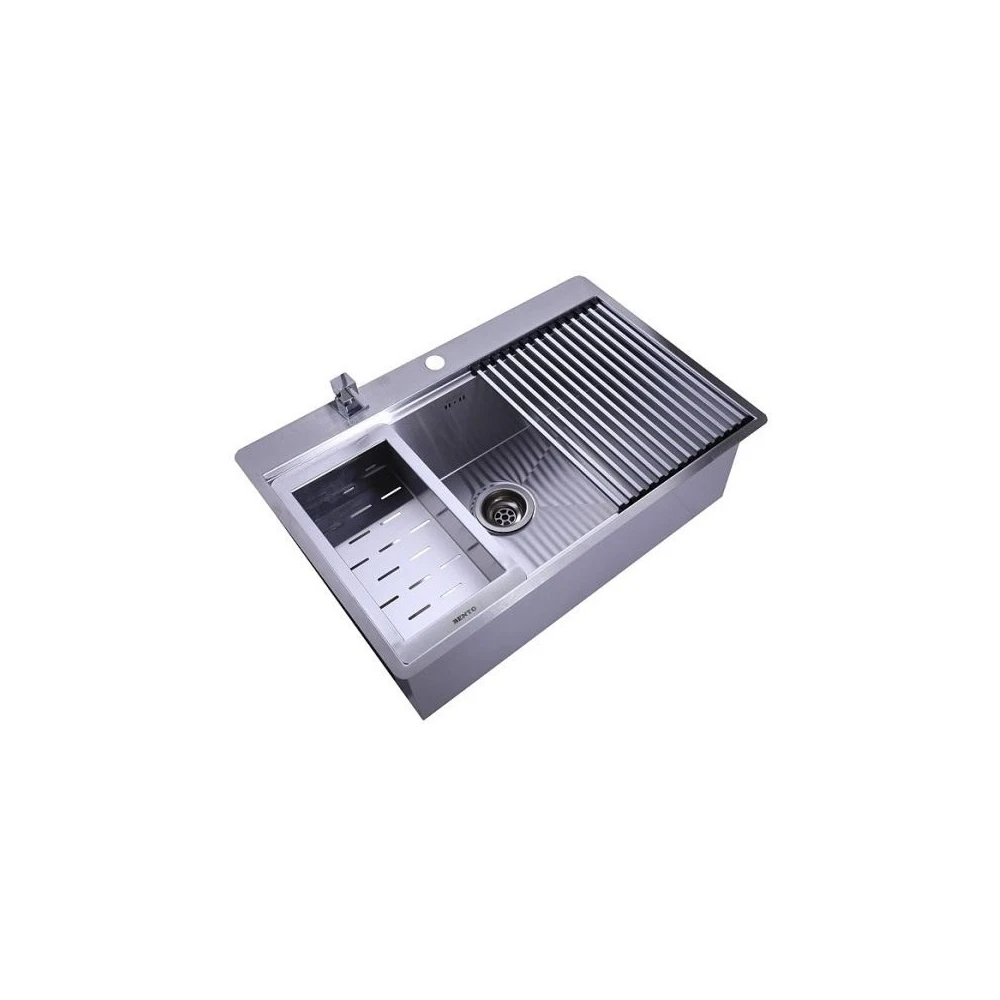 اندازه:45*75 جنس ورق: استیل 304 تجهیزات: شیرظرفشویی شلنگدار،شیر تصفیه،شیر آبشاری،لیوان شور،جامایعی،سیفون اتومات،سبد استیل،تخته سبزیجات،چراغ ال ای دی بدون نیاز به باطری،صفحه نمایشگر دمای آب بدون نیاز به برق و باطری...