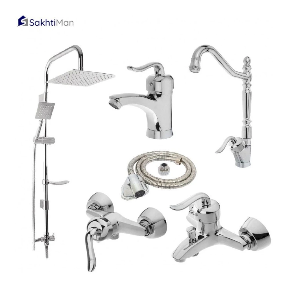 ست شیرآلات فراست پویا مدل قاجاری ۶ عددی کروم همراه با علم دوش دوکاره