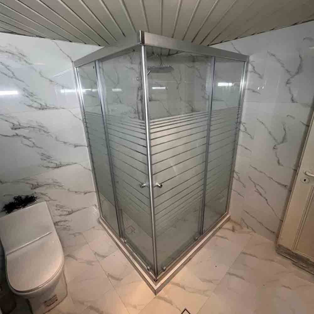 کابین دوش 120×120 فریم دار استیل شیشه طرح دار با سکو
