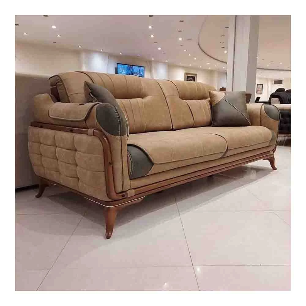 ست مبلمان: 3+2+1+1 امکان سفارش با تعداد نفرات متفاوت جنس پایه ها و بدنه: چوب راش  امگان تغییر رنگ پارچه و نوع چوب امکان افزودن میز و عسلی