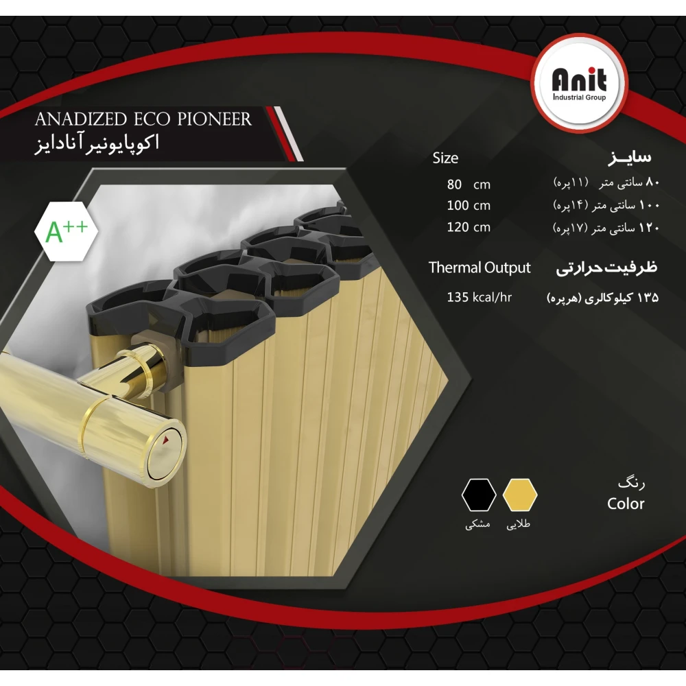رادیاتور آلومینیومی آنیت مدل اکوپایونیر طلایی 17 پره