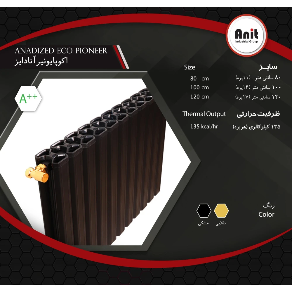 مشخصات رادیاتور آلومینیومی آنیت مدل اکوپایونیر آنادایز مشکی 14 پره