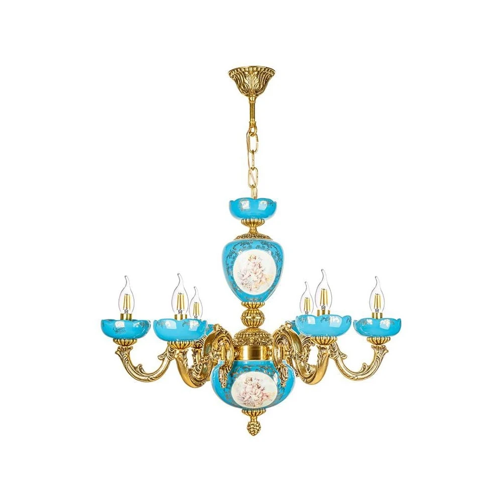 لوستر چشمه نور 6 شعله کد C2550/6-B-BL آبی