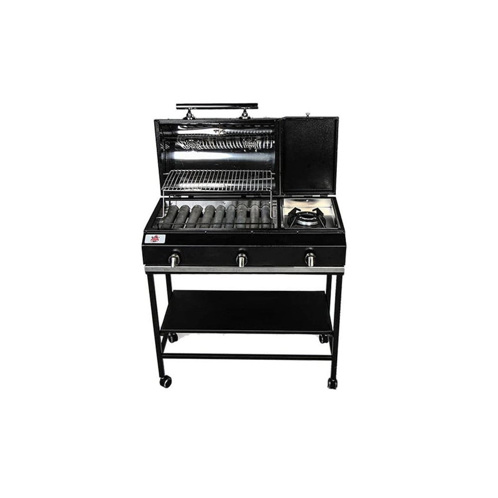دارای میز بغل چوبی دارای شلف متحرک برای گریل دارای چرخ و قابلیت جابجایی آسان دارای درب گنبدی و هواکش مخصوص تنوری کردن مواد غذایی بدنه تمام الکترواستاتیک قابل شست و شو دارای سینی تخلیه چربی