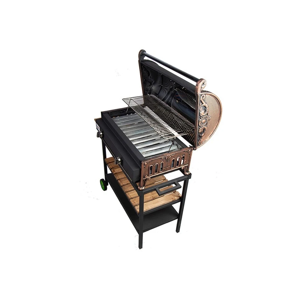 کباب پز و باربیکیو گازی مدل آلتین در اندازه 80*40 با ردیف های چدن و دو شیر که برای کنترل شعله ها تعبیه شده است از کم مصرف ترین کباب پز ها به شمار می رود . استفاده از مواد مرغوب چدنی در این کباب پز باعث طول عمر بالای آن شده که رضایت خاطر مصرف کننده را به همراه دارد. درب گریل دار باربیکیوی مدل آاتین حسینی مانند فر عمل کرده و باعث می شود گوشت مغز پخت شود،به علاوه شما با دماسنج قرار گرفته روی درب این مدل می توانید به راحتی دما را تنظیم کنید.