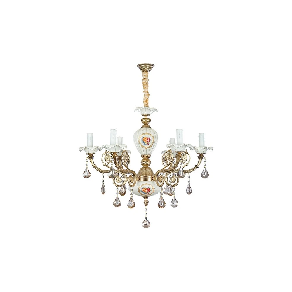 لوستر شش شعله کد C3324/6-WT-AO شرکت لوستر سازی چشمه نور تولید و عرضه می کند. جنس این لوستر زیبا از فلز گران قیمت برنج می باشد و برای زیبایی بیشتر در ساخت این محصول از سرامیک سفید در قسمت ستون و چند جای دیگر نیز استفاده شده است .طرح های زیبای حک شده بر روی سرامیک استفاده شده به کلاسیک بودن C3324 کمک به سزایی کرده است کندهکاری و طرح های زیبایی که بر روی شاخه های این لوستر ایجاد شده به زیبایی این لوستر افزوده است. وزن ا ین لوستر حدود 10 کیلوگرم می باشد و برای سقف های کاذب کمی سنگین می باشد. استفاده از لامپ های شمعی به زیبا تر شدن این لوستر کمک به سزایی می کند.