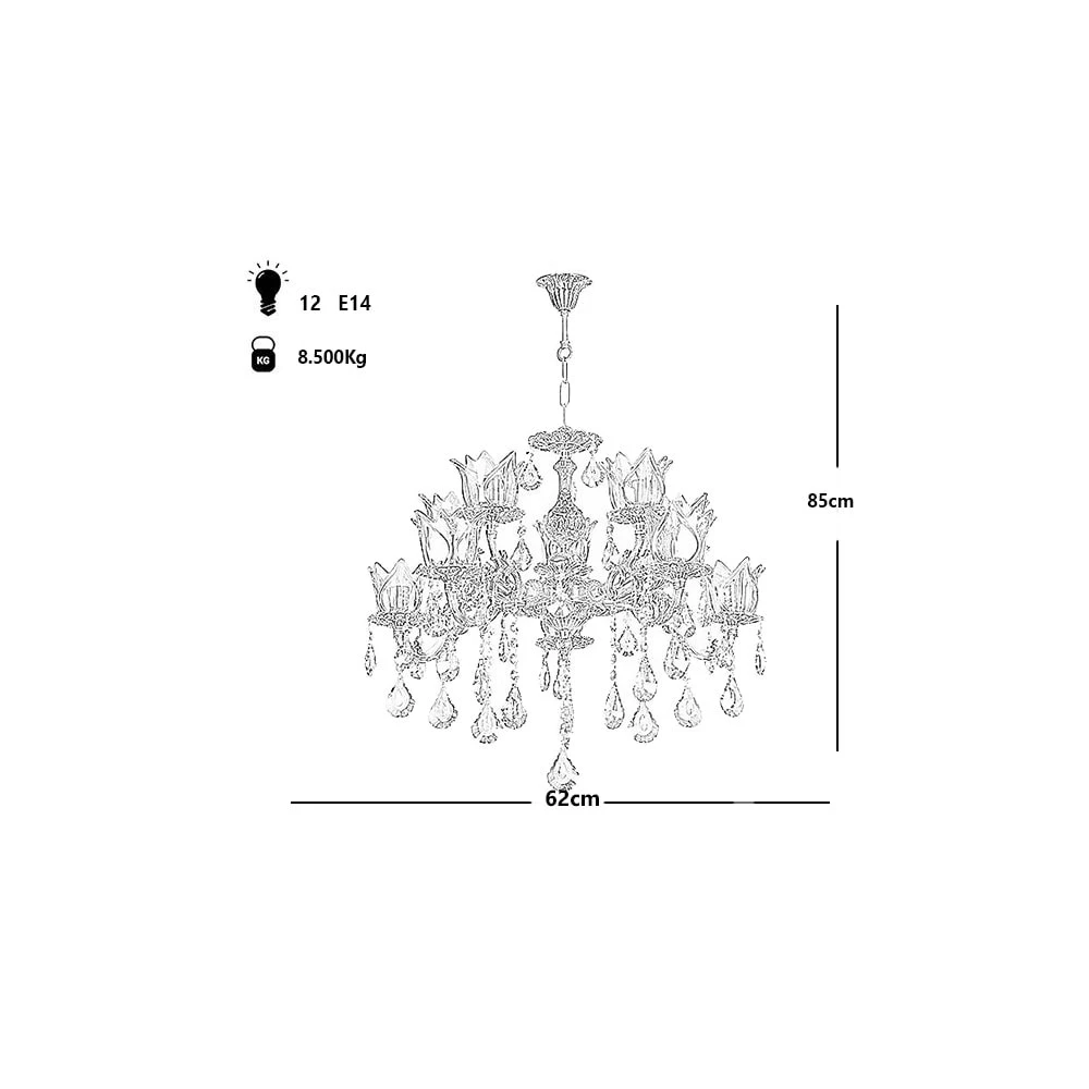 این مدل لوستر مناسب سالنهای تشریفاتی،اتاقهای پذیرایی و یا هر کجا که نیاز به شکوه و جلال دارد است.در طراحی این مدل نهایت ظرافت استفاده شده، برای همین این مدل برای اتاقهای کوچک با دکوراسیون ساده هم مناسب میباشد. اما شما میتوانید از شمعدانها، دیوارکوبها، ظروف میوه خوری و یا حتی مجسمههای برنزی در چیدمان خانه ی خود استفاده کنید.