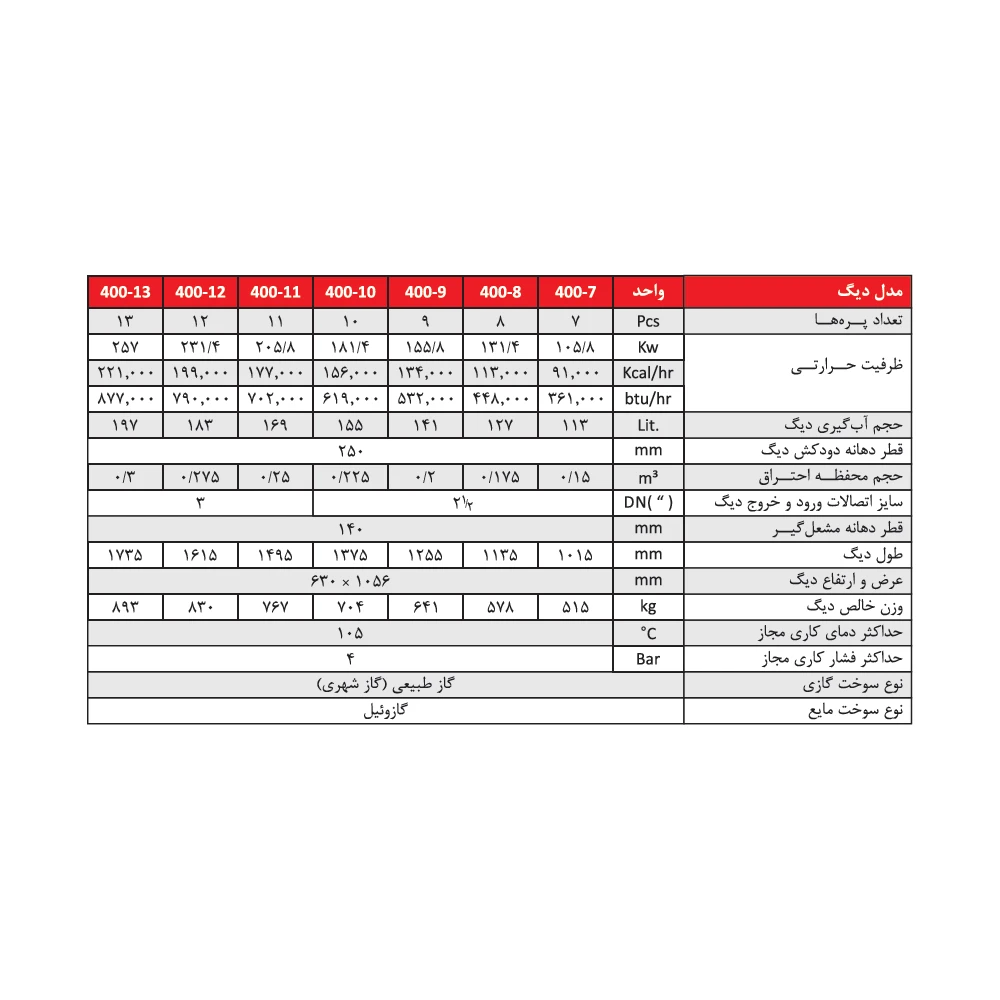 مشخصات بویلرهای چدنی شوفاژکار سولار 11-400