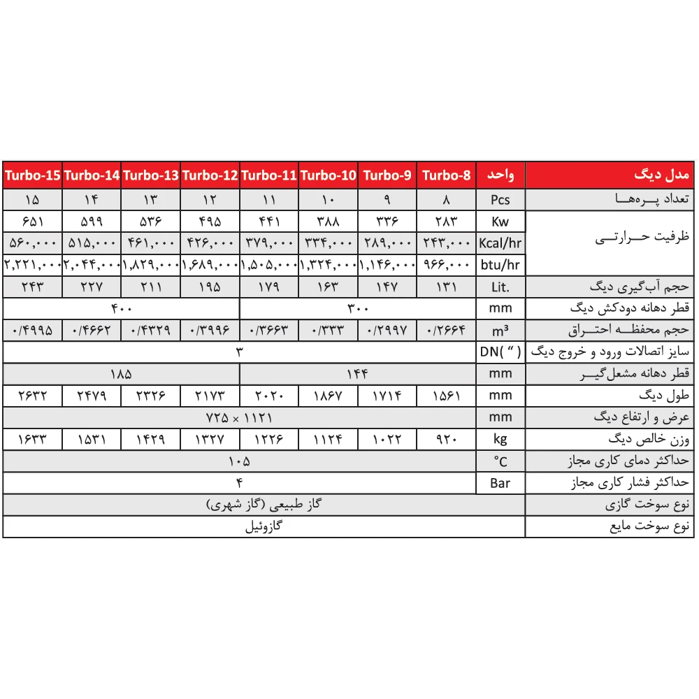 مشخصات شوفاژکار بویلر چدنی turbo-8